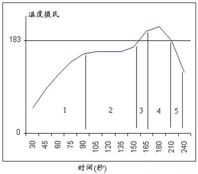 當(dāng)錫膏至于一個(gè)加熱的環(huán)境中,錫膏回流分為五個(gè)階段